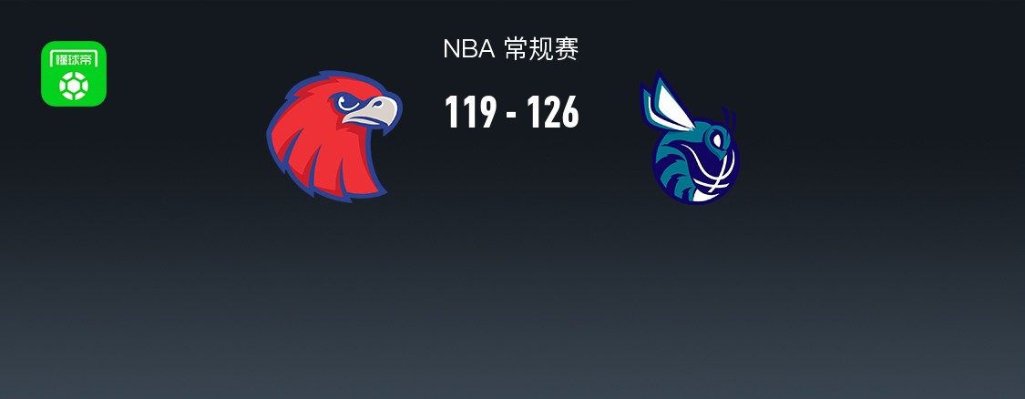 第四节老鹰杰伦-约翰逊拿下15分,黄蜂迈尔斯-布里奇斯拿下9分,最终老鹰119-126不敌黄蜂